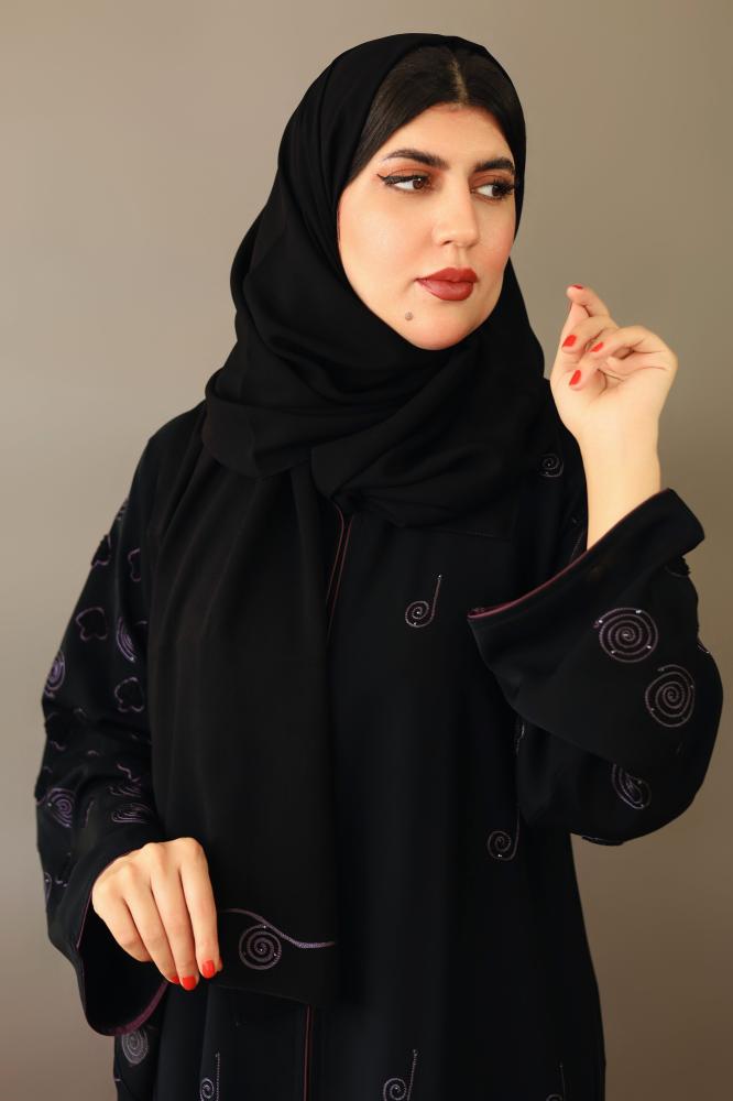 عباية سوداء مطرزة هاري يزين كامل العباية ومصنوعة من قماش نواعم الفاخر الذي يمنحك إحساسًا بالراحة طوال اليوم وهذه العباية تجمع بين التصميم التقليدي والعصري حيث يضيف التطريز الفني لمسة من الفخامة والرقي تجعلها قطعة مثالية للمناسبات الخاصة والأيام العادية على حد سواء.