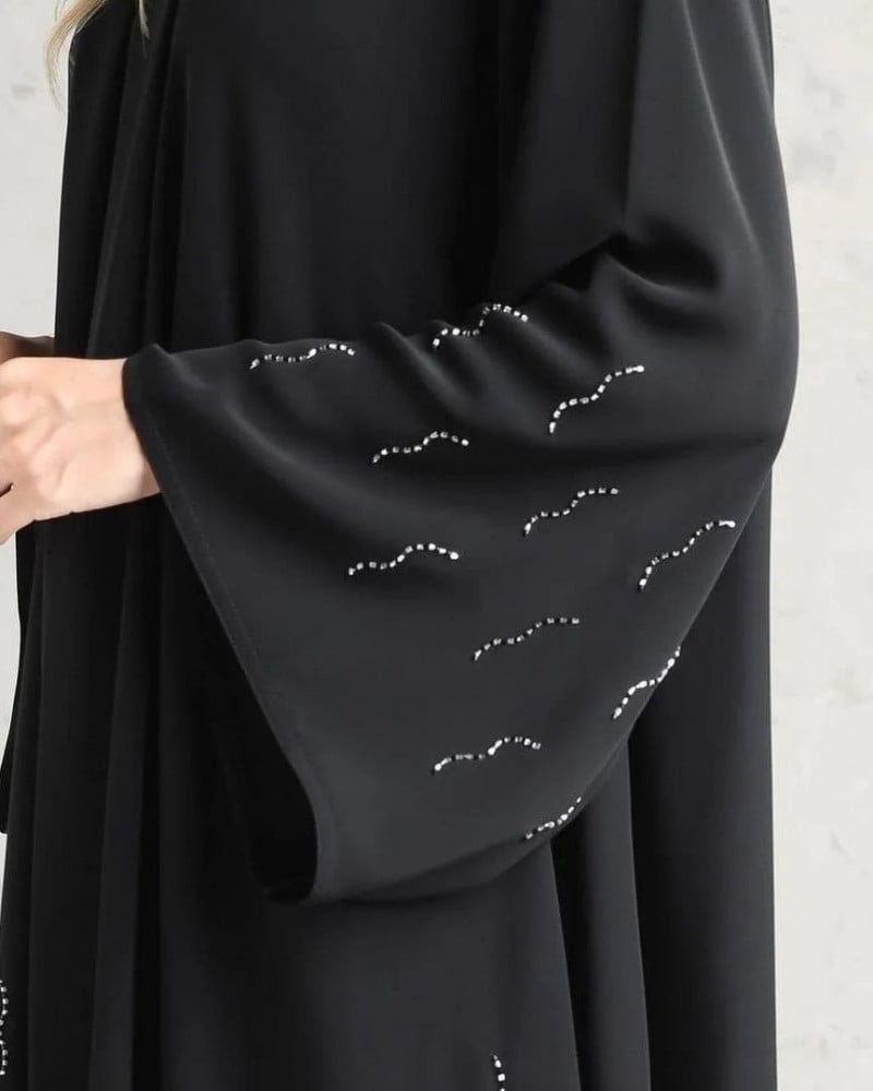 اكتشفي سر الجمال والأناقة مع عبايه كريب ملكي اسود شك إنها الخيار المثالي لكل امرأة تبحث عن التميز والفخامة في إطلالاتها اليومية والمناسبات الخاصة بتصميمها الراقي والتفاصيل الدقيقة تضفي هذه العباءة لمسة من السحر والأنوثة على شخصيتك.