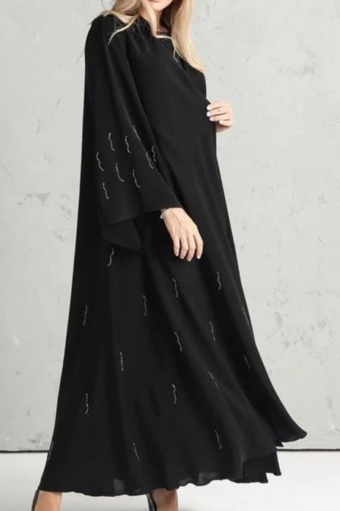 • عبايه كريب ملكي اسود خامة خفيفة الوزن ومريحة على الجسم.