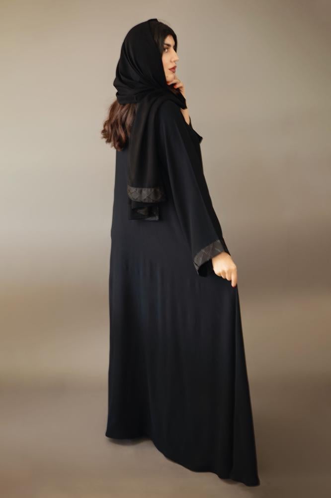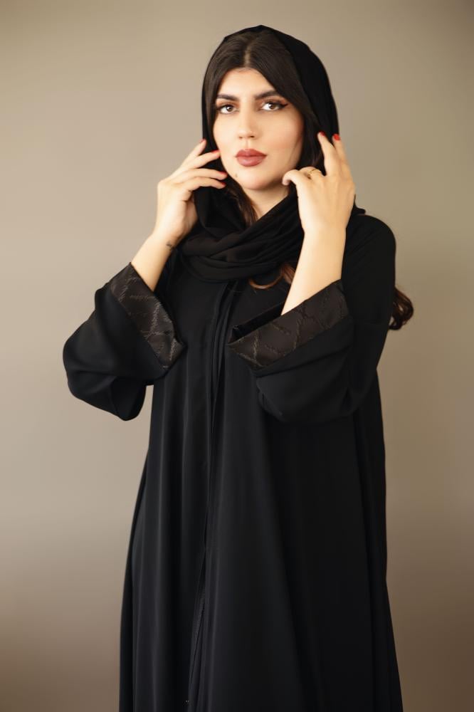 - أطراف الأكمام مزينة بجاكار عالي الجودة يضيف لمسة من الفخامة والرقي للعباية.